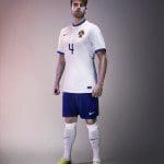 The World Cup is just months away and today Portugal & Nike have unveiled the former’s new away kit for 2014. The jersey is designed with minimalism in mind. Plain white with a unique two-level stand collar and blue cuffs.