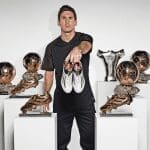 From the adidas release: “Today adidas unveiled the Pibe de Barr10, inspired by the Barrio of Las Heras, Rosario, where Messi learned to play the game. Designed in collaboration with Rosario-born graphic artist Ignacio Valentini, the Pibe de Barr10 pays tribute to Messi’s childhood. Fusing urban-inspired raw brush strokes with polished sleekness on the synthetic hybrid touch upper, the cleat embodies Leo Messi’s soccer style. The speed traxion stud alignment and outsole are modeled on sprinters’ spikes, to provide the speed and agility to dominate on the pitch. 360˚ DRIBBLETEX coating provides for unprecedented control. In wet or dry conditions, the ball will stick like glue.”