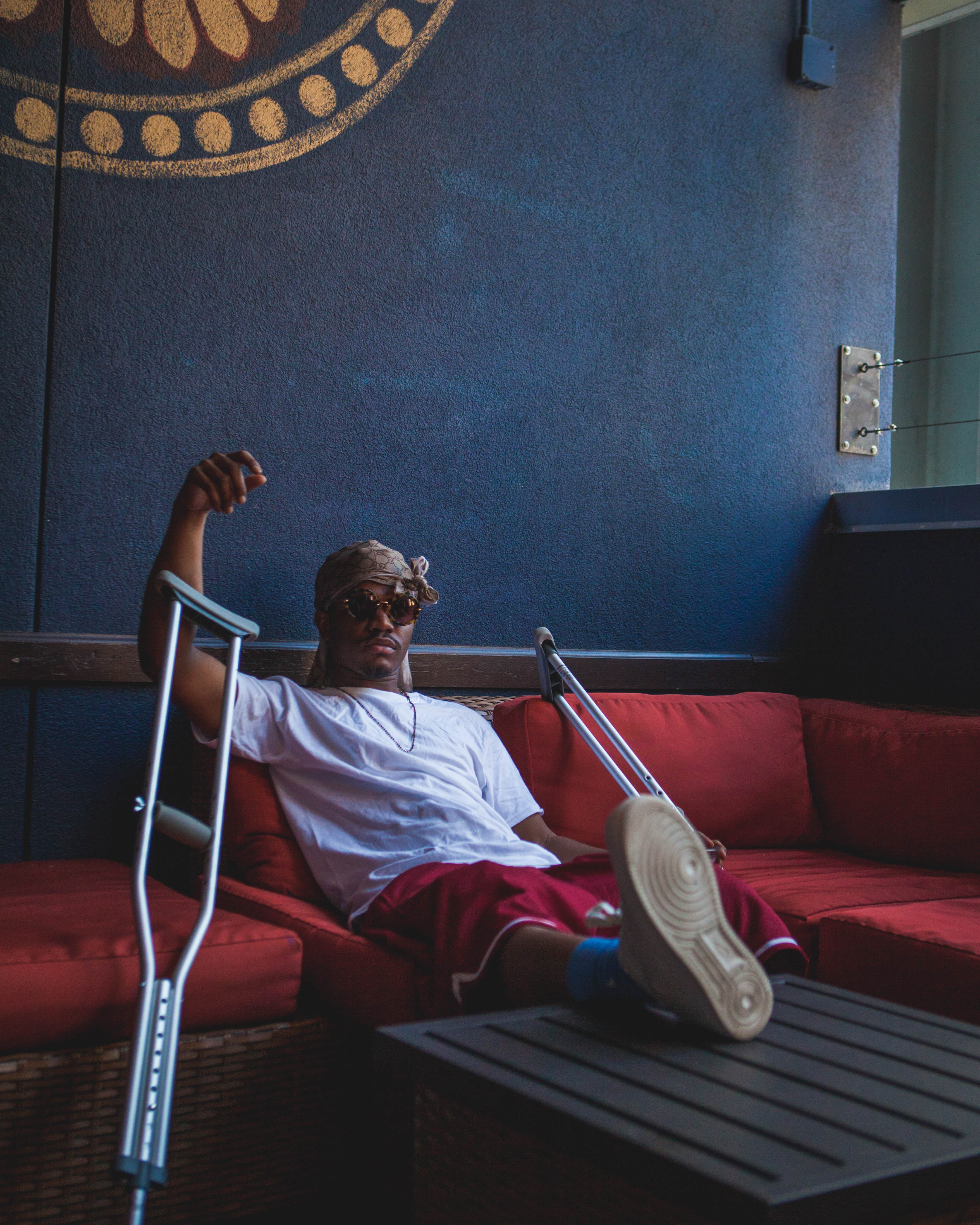 It was crazy to see the level of energy he can bring even after the injury he got on just the second show of his tour. Lounging backstage, Smino posed for a couple shots for me, with crutches and all. His presence was just as potent onstage as it is off it; you can see it clearly in these photos.