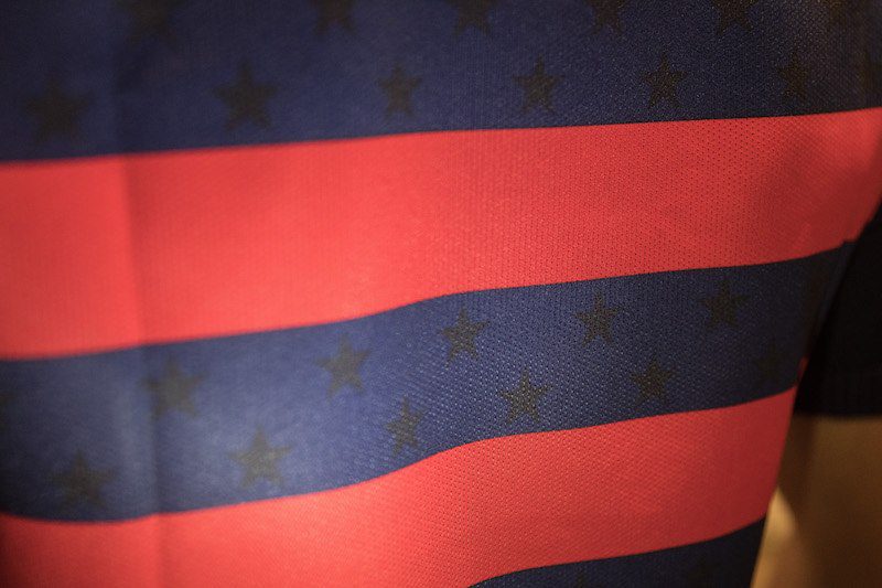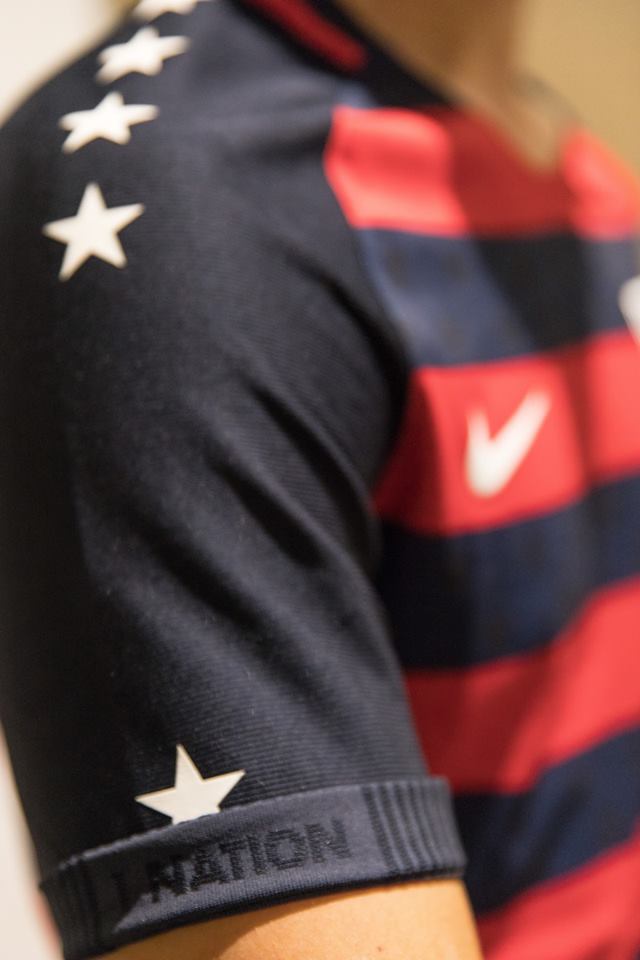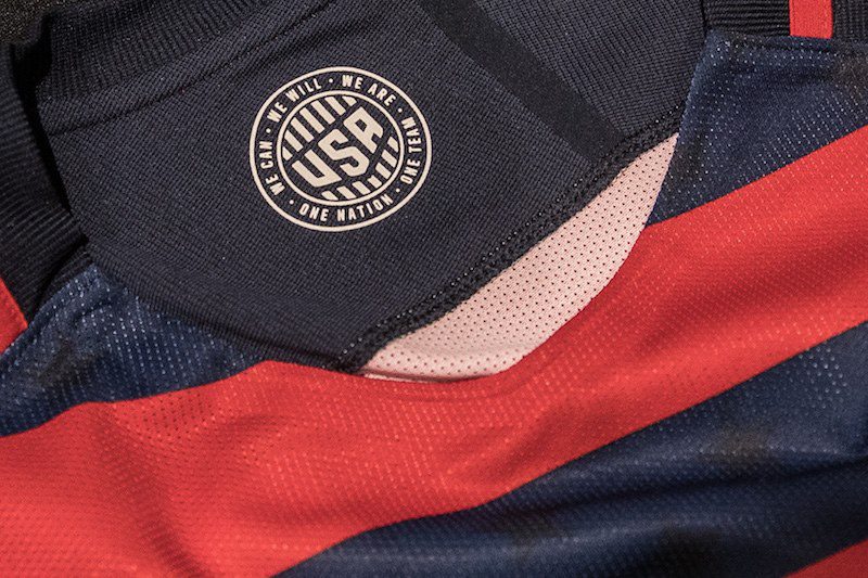 U.S. Soccer and Nike have unveiled the Men’s National Team’s new kit, to be worn at the forthcoming 2017 Gold Cup tournament that crowns the best of North America. On the new kit you’ll find “One Nation” is detailed on the left shirt sleeve, and “One Team” on the right. A graphic reading “We Can,” “We Will,” “We Are,” is knitted visibly on the back of the shirt, just inside the collar.