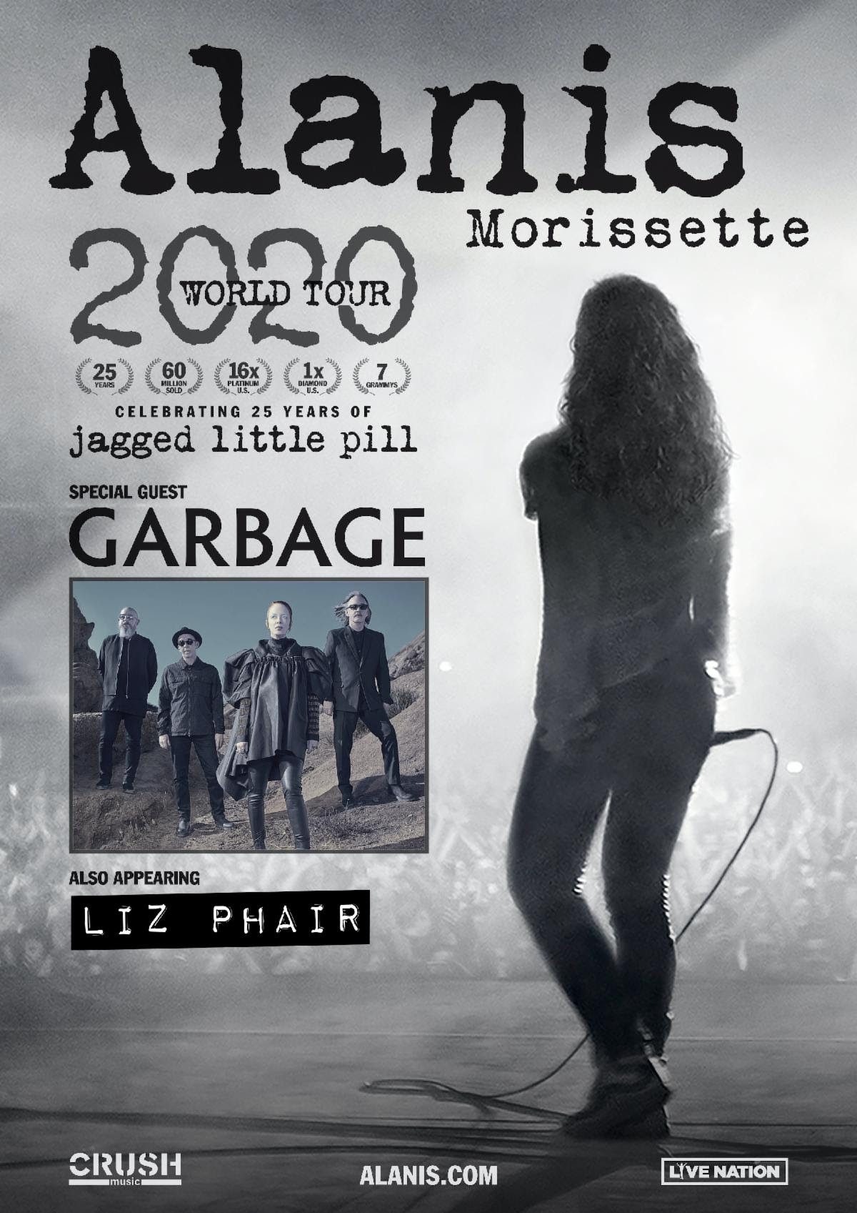 Alanis Morissette is celebrating 25 years of her 90s defining album, Jagged Little Pill, with a massive North American tour. The 31-date trek produced by Live Nation will see Alanis joined by fellow Alternative icons Garbage and Liz Phair as they hit cities like Portland for the opening date and closing the tour in Nashville, with stops in Salt Lake City, Austin, Charlotte, and Toronto in between.