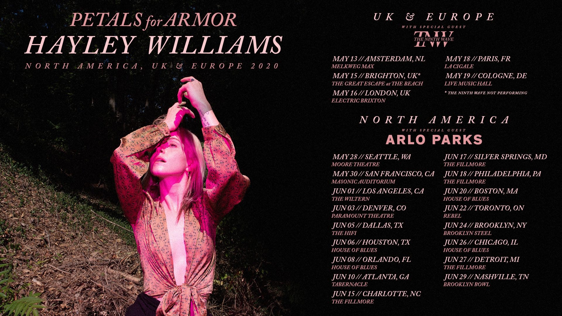 The Ninth Wave have been tapped to support Hayley Williams across Europe, and Arlo Parks will come onboard to play the North American dates.