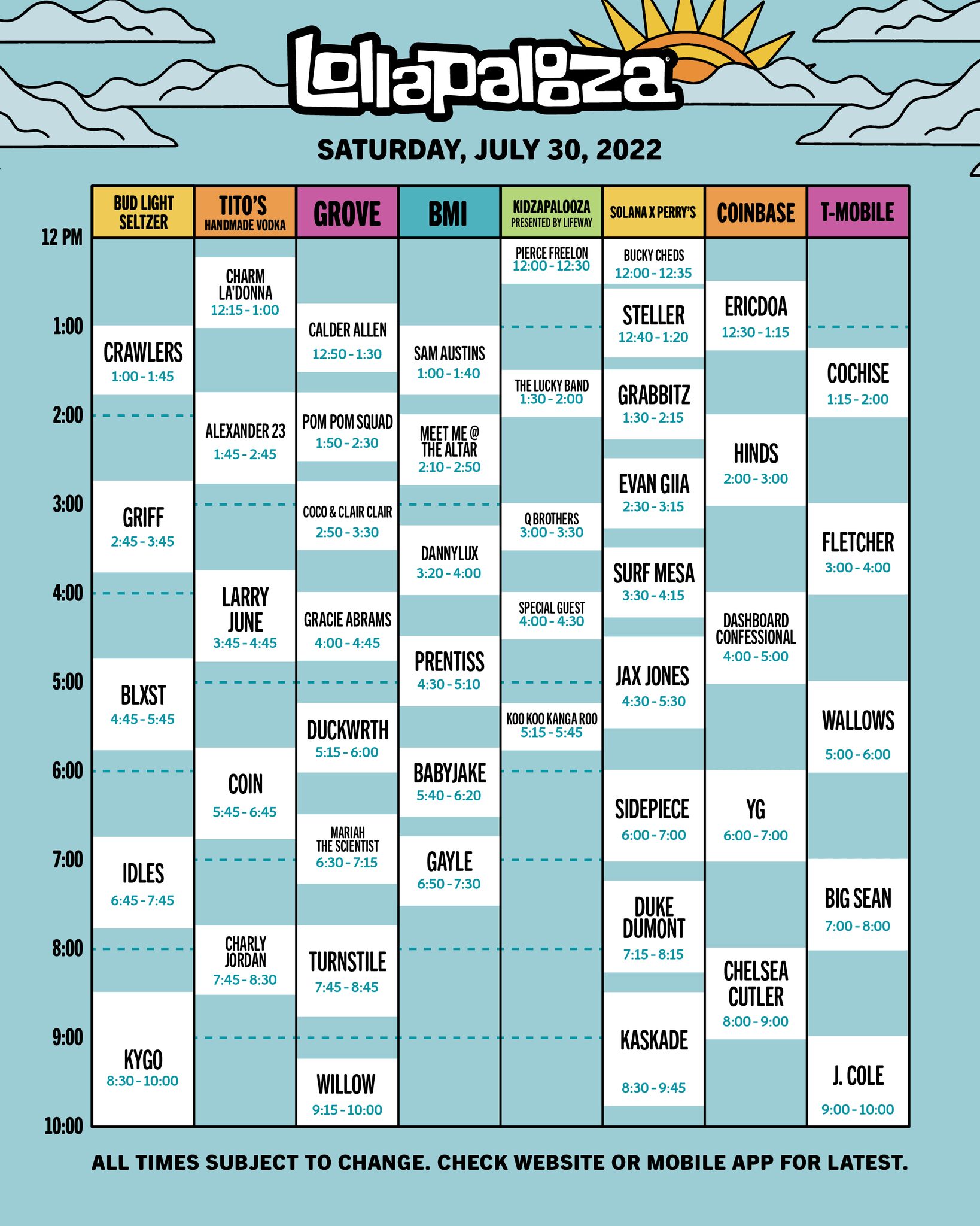 Check out the Lollapalooza 2022 daily schedule below. Thursday