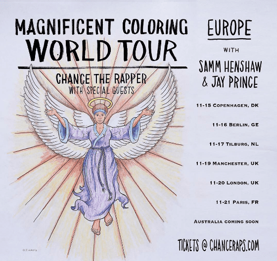 Just a couple of days before unveiling the U.S. leg of his Magnificent Coloring World Tour, Chance The Rapper has now revealed the dates for the European